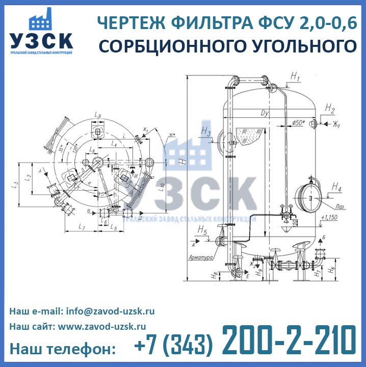 Главная > Фильтры > Фильтр сорбционный угольный типа ФСУ > Сорбционный фильтр ФСУ-2.0-0.6